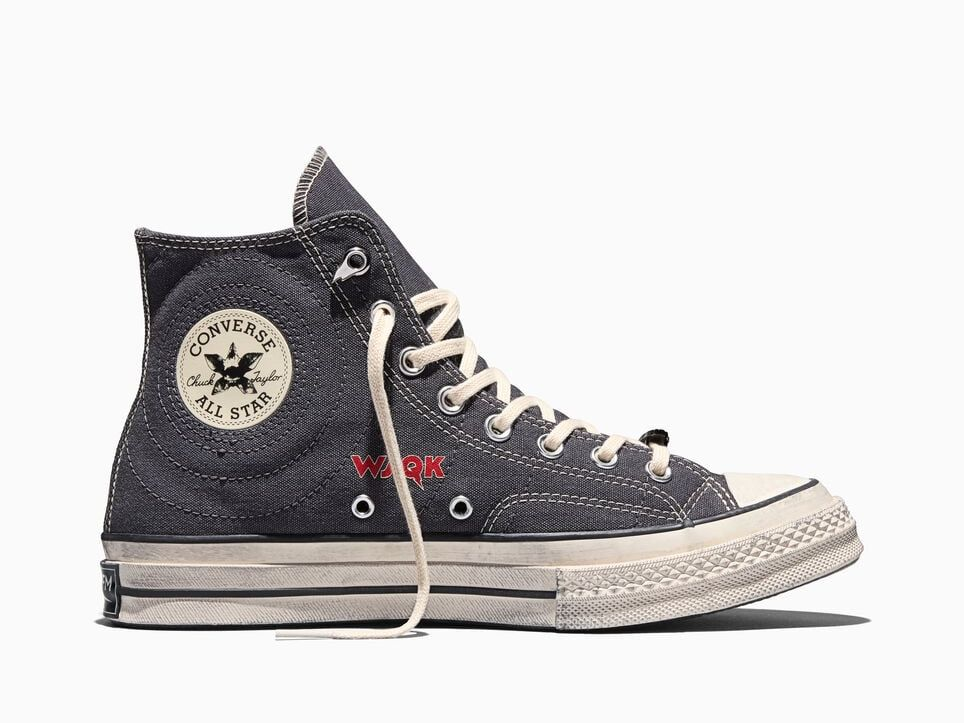 Να η τάση πίσω από αυτό: Εμπνευσμένο από το μυστηριώδες σύμπαν Upside-Down του “Stranger Things”, το νέο sneaker διαθέτει ένα γκρι καμβά στο πάνω μέρος . Περιλαμβάνει επίσης αναφορές στη σειρά, όπως ένα κεντημένο διακριτικό “Rockin’ Robin”, μια στάμπα “HellFire Lives” και ένα έμβλημα Demogorgon All Star. Οι θαυμαστές της σειράς θα ξέρουν τι παίζει! Υπάρχει επίσης ένα στολίδι Hawkins Hawk στο κορδόνι του παπουτσιού, το οποίο είναι εμπνευσμένο από τη Vecna (την νούμερο ένα κακιά της σειράς).
